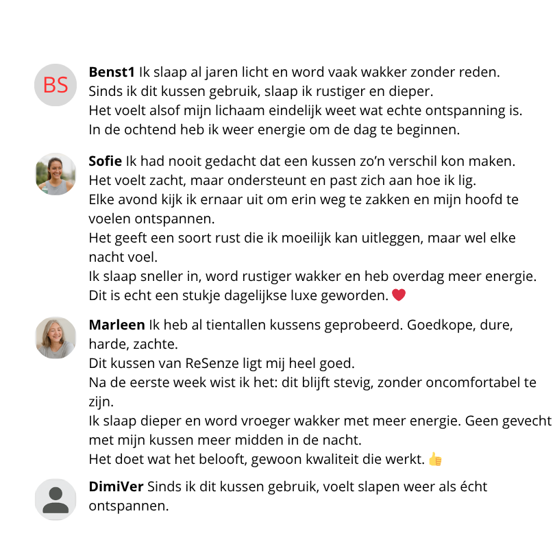Je draait, zoekt, legt je kussen dubbel — en toch voelt het nooit helemaal goed. Daarom hebben we bij ReSenze dit kussen geselecteerd.